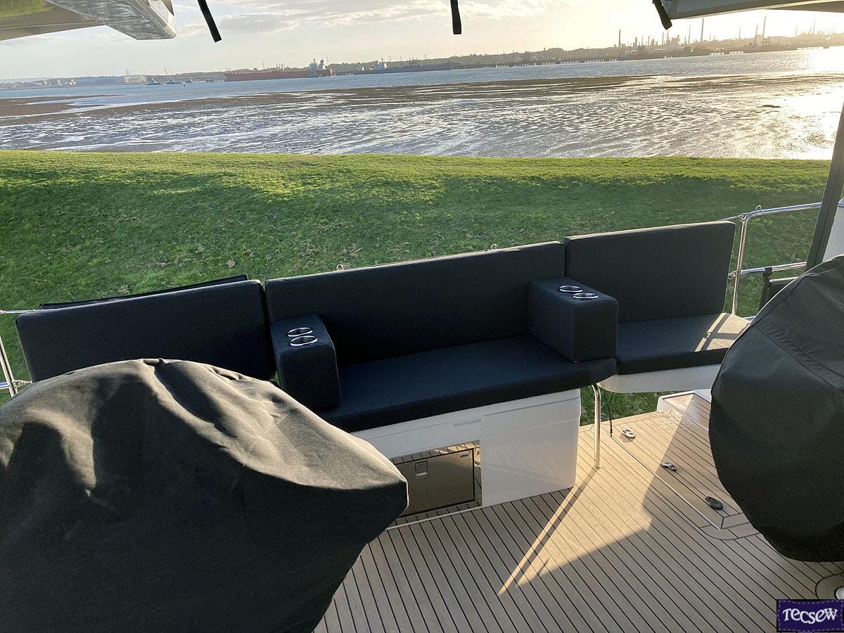 Hanse 588 HT Aft Cockpit Cushion Seats, Backs and Armrests with Drink Holders