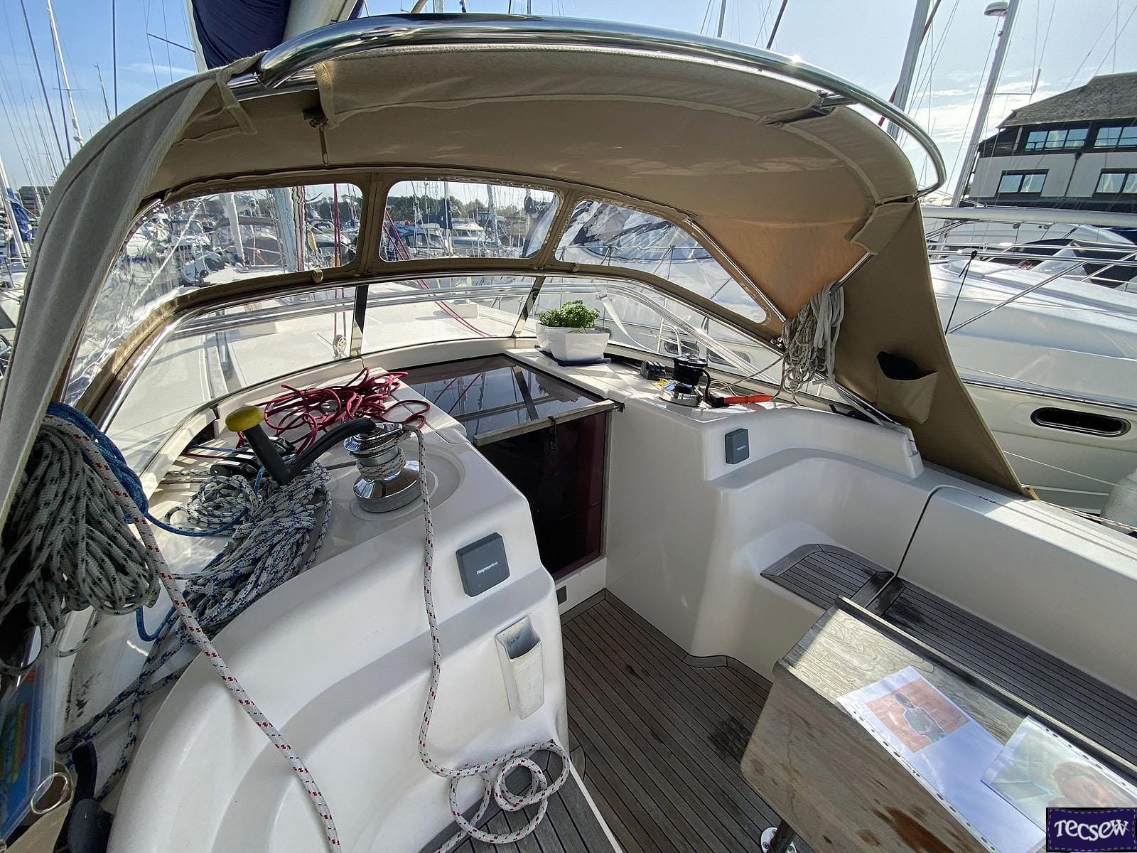 Click to view Moody 45 Classic Cockpit Enclosure with optional window blinds